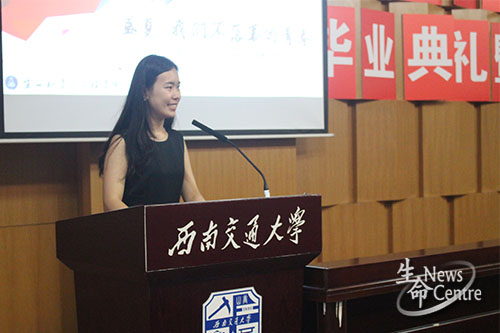 之后,本科毕业生代表夏林进行发言,她表达了毕业的复杂心情:激动、不舍、怀念,同时,亦表达了对学院老师们的感谢;硕士研究生代表李慧随即发言,同样对老师们的辛勤付出表示感激,此外,她回顾七年的交大生活,深情饱满的演说牵动着每一位毕业生的心;作为教师代表,李遂焰老师对毕业生们取得的优异成绩表示祝贺,并希望他们能够常回学校看看。