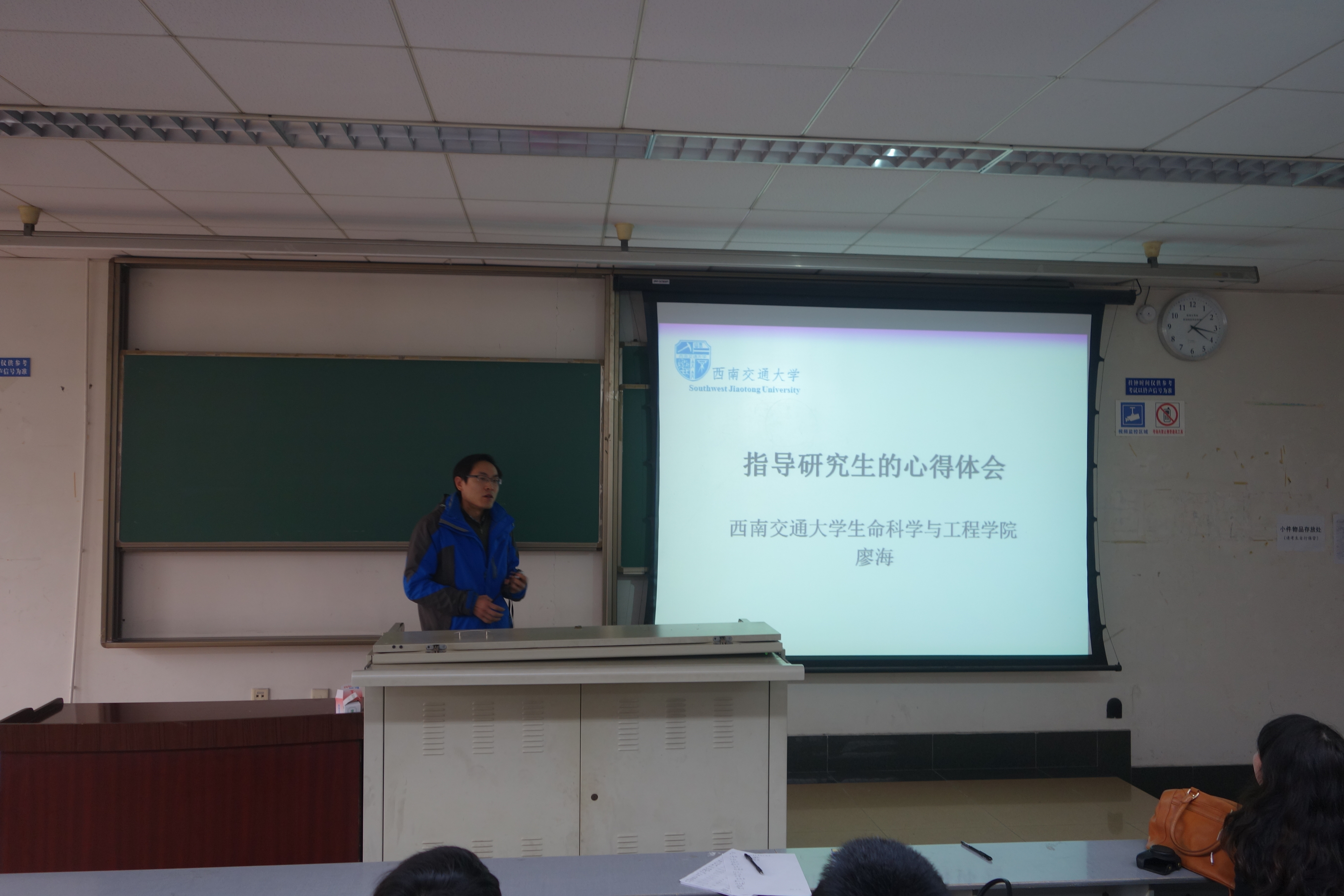 孟涛,廖海,郭志云,周嘉裕,黄新河、王萃娟,王枢,黄帅,侯宗瑞等青年导师。交流会由院长助理袁艺主持,全体研究生参与。