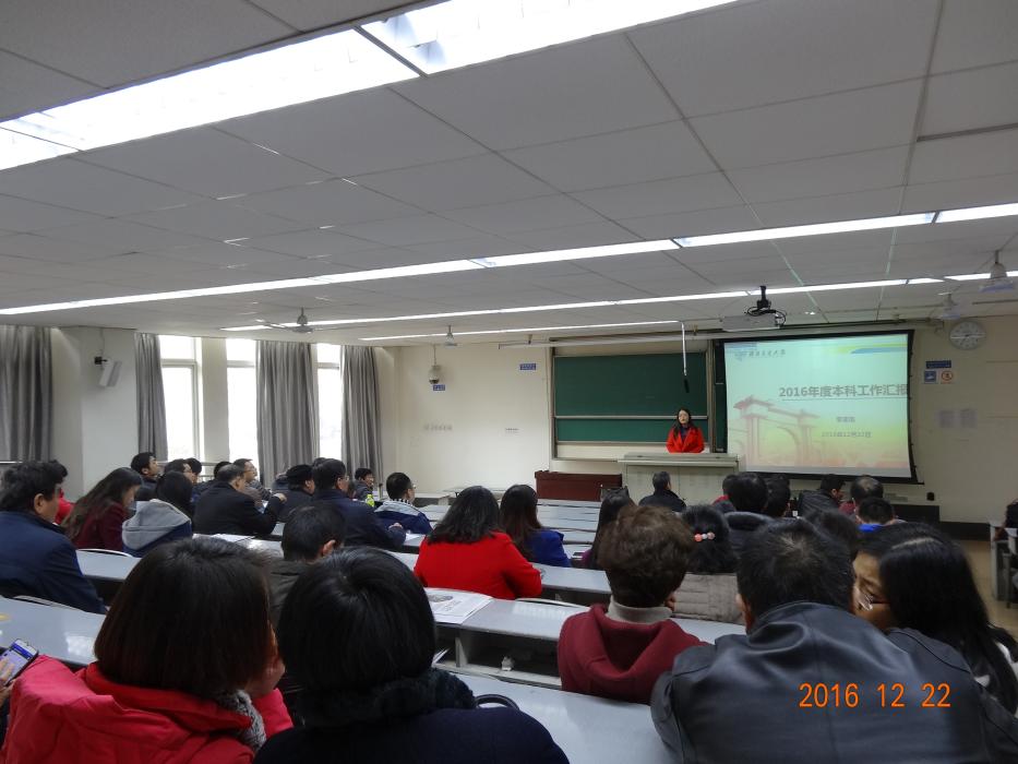 在九里校区4309召开2016年全院第六次教职工大会。会议分为三个阶段,由院党委书记李卓慧主持。