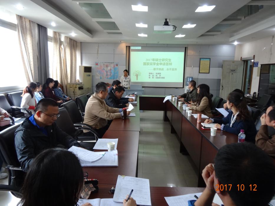 2017年10月12日下午2:30,新澳门六合彩资料 在电气馆3609举行了研究生国家奖学金评审答辩会。答辩会由闫智勇副院长主持,学院院长、书记担任研究生奖助工作委员会主任,分管研究生工作的副院长及分管学生工作的副书记担任副主任委员,各系主任、导师代表、教务员、辅导员、研究生代表任评审委员。