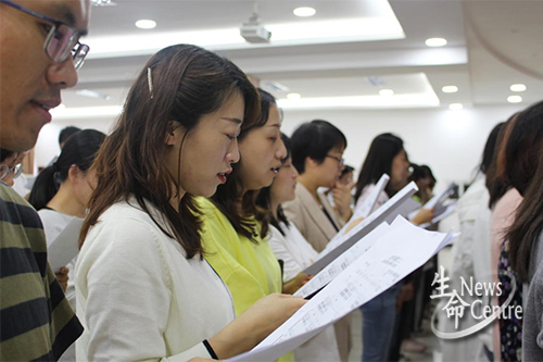 比赛当天,大家在一起齐声合唱《让世界充满爱》、《爱我中华》,将满腔的爱国情化作动听的旋律,用歌声表达对祖国深情的祝福与热爱,引起了现场观众的强烈共鸣,赢得了一阵阵热烈的掌声。歌声唱出了新澳门六合彩资料