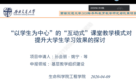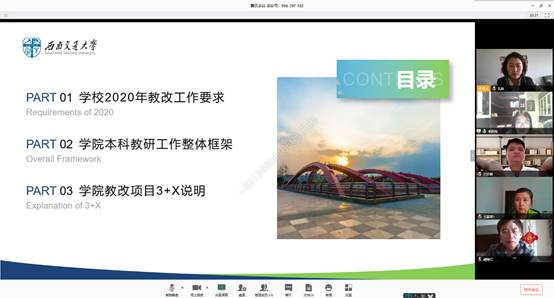 首先,学院党委葛永明书记结合《中共中央 国务院关于深化教育教学改革全面提高义务教育质量的意见》、《西南交通大学关于新时代深化本科教育教学改革,提高人才培养质量的若干意见》等文件精神,鼓励一线教师们凝心聚力,汇集学院各方力量和优势,把重点放在推动学院人才培养工作上来。例如,将课程思政与金课培育相结合,以目前全面开展线上教学为契机,推进学院新工科和一流专业建设。