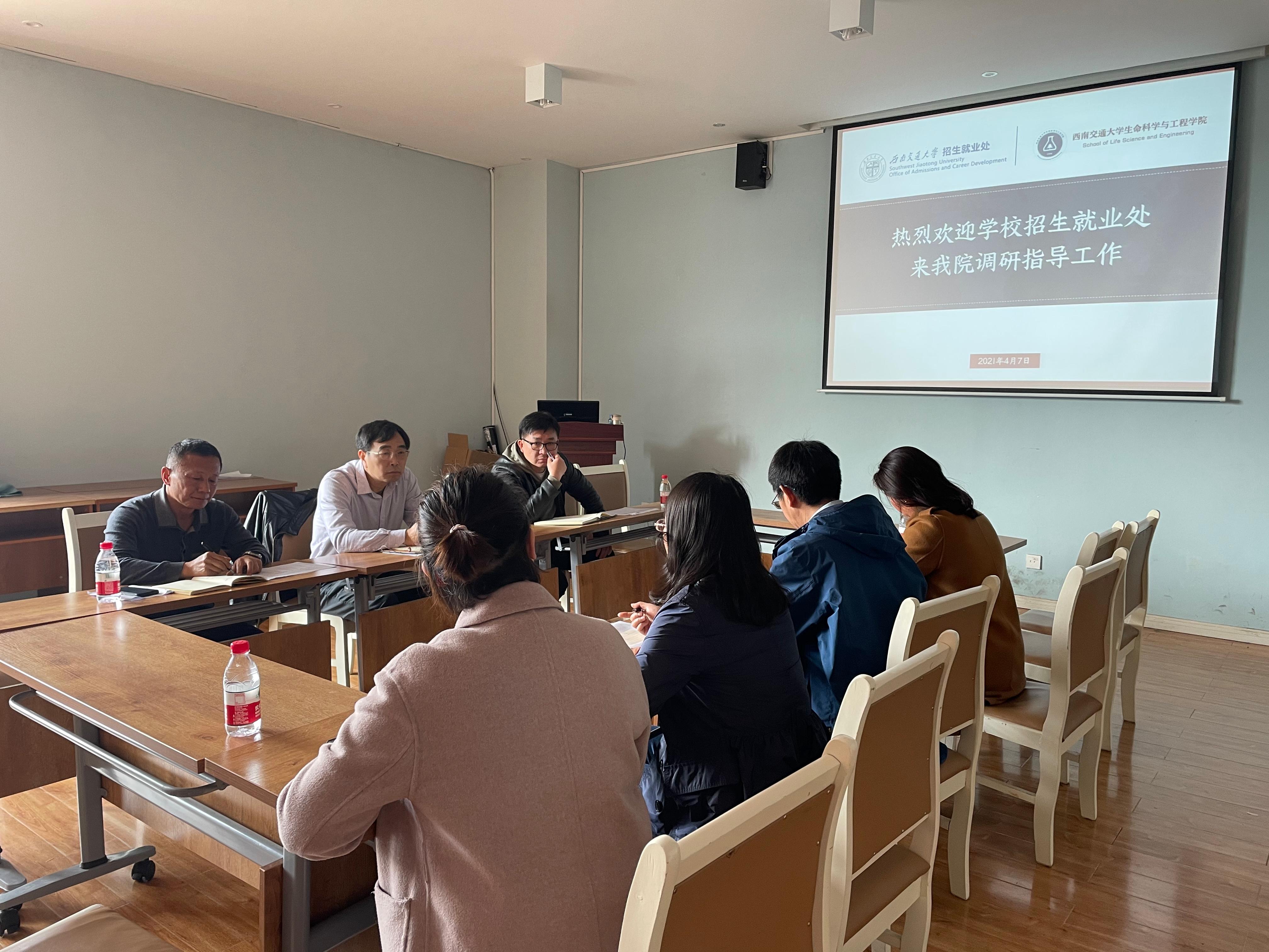 调研。出席会议有招生就业处陈岩峰处长、何安涛副处长、吕冬科长,学院赵钢锋副书记、李遂焰副院长、学工组副组长高鹏老师、党委专职组织员孔琳老师。会议由赵钢锋副书记主持。