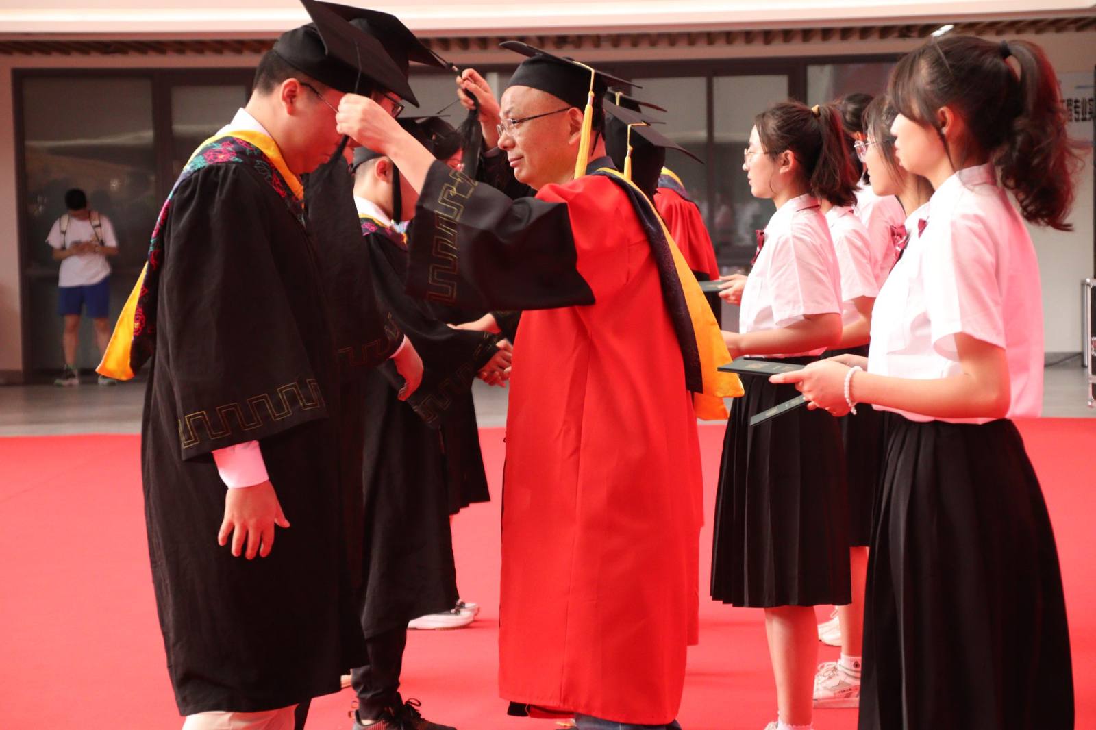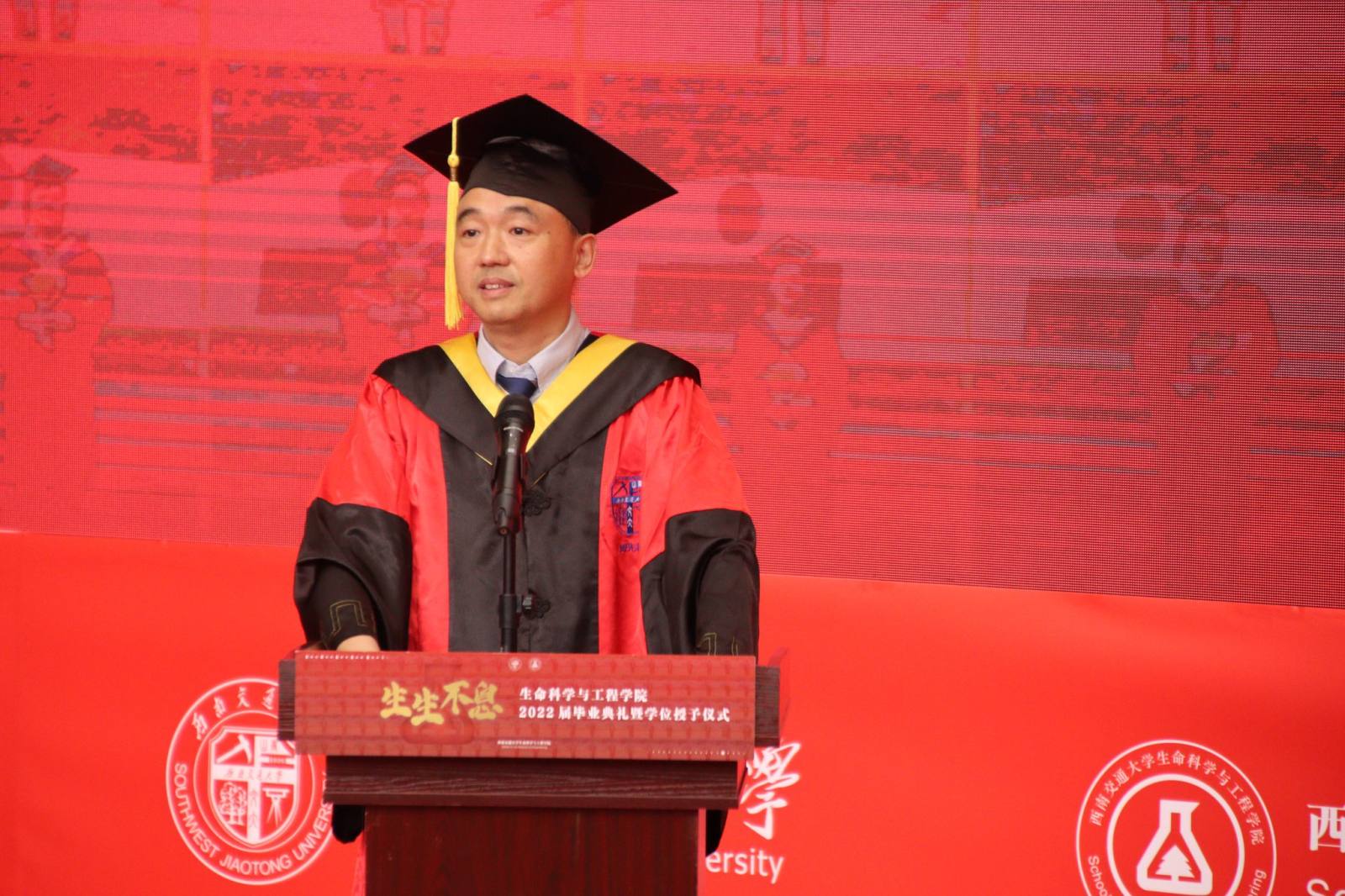 典礼在庄严的国歌中拉开帷幕。周先礼代表学院向全体毕业生送上衷心祝贺,以“理想还在吗?”、“还要依赖他人吗?”、“本领够硬了吗?”三个发人深思的提问引发毕业生们的思考。在临别之际,他语重心长地向毕业生们提出三点要求:要坚定信念、把人生理想融入到党和人民的期待中,要热爱祖国、心系母校,要沉淀积累、锤炼本领。“时代与你们是双向奔赴的!”他指出,同学们要把握时代机遇,在实现中华民族伟大复兴的征程中,做不负韶华、堪当重任的交大人。