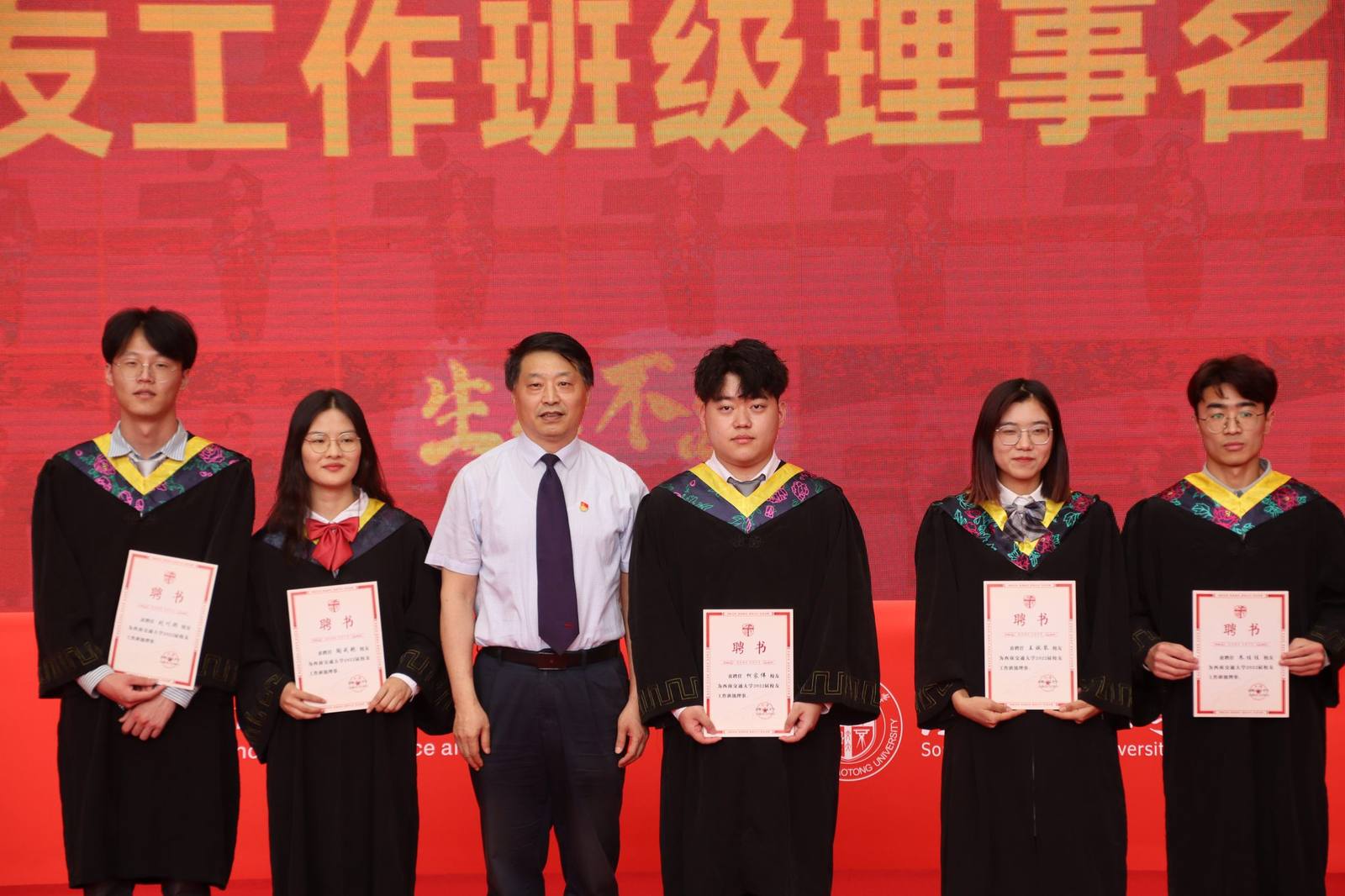 葛永明宣读2022届校友工作班级理事名单并为理事代表颁发证书。他寄语校友工作班级理事与母校母院保持联系,积极主动,发挥作用,做联结校友和母校的纽带,为学院建设和学校发展建言献策、贡献力量。