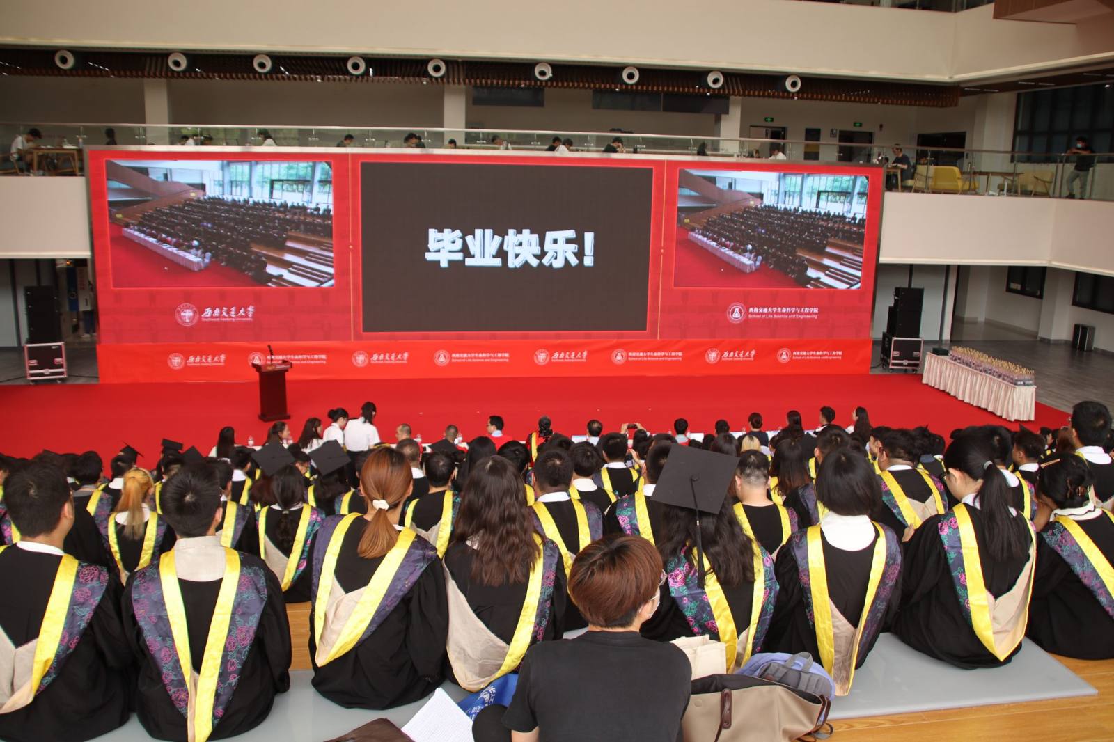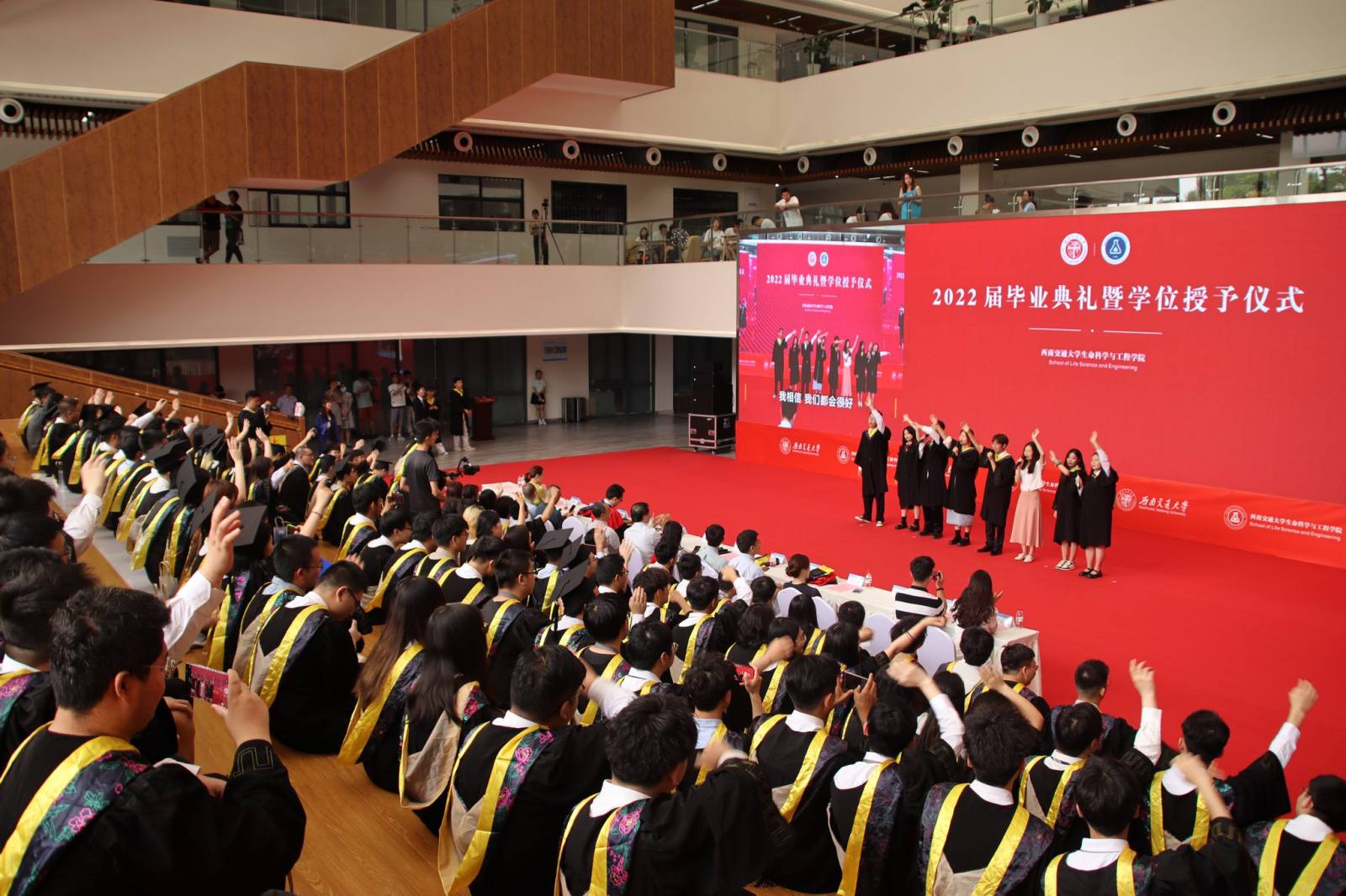 在犀浦校区三号教学楼一楼下沉广场举办2022届毕业典礼暨学位授予仪式。学院党委书记葛永明、院长周先礼等院领导与全体毕业生一起现场参加典礼。由于疫情未能返校的部分毕业生和亲友通过观看图文直播的方式线上参与典礼。典礼由吴亦鸣同学主持。