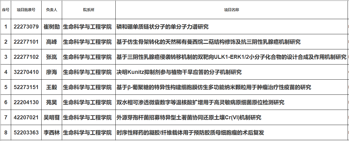获得8项国家自然科学基金项目支持,其中面上项目5项,青年科学基金项目3项,新澳门六合彩资料