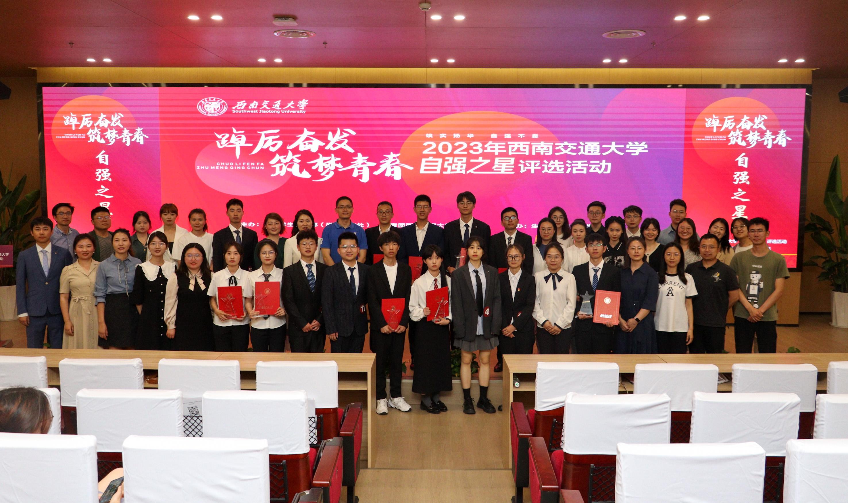 西南交通大学自2008开始举办“自强之星”评选活动,涌现出了一大批自立自强的优秀大学生典型,现已成为学校资助育人主题活动的品牌项目。十五年的时间里,共推报产生了1名中国大学生自强之星标兵、10余名中国大学生自强之星、100余名西南交通大学自强之星,他们在自己的领域闪耀,在为梦想努力,在影响、在鼓励更多的身边人,成为了新时代大学生们可亲、可敬、可信、可学的青年榜样,引领广大青年学子努力成长蔚堪当民族复兴大任的时代新人。