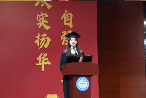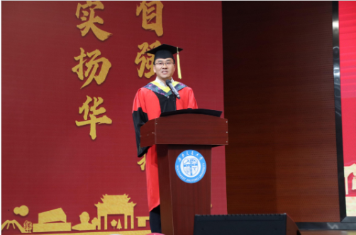 在典礼上,教师代表、学院院长助理黄新河副教授赞扬了同学们通过了“停课不停学”“复学复课”的“大考”,以幽默的语言带领同学们回顾在交大的求学之路后,留给同学们“四个切忌”“四个保持”“四个平衡”,饱含着师长对临别远航学生们高度的赞扬、衷心的祝福和真挚的嘱托。2023届毕业生代表周河汐同学讲述她在交大学习和奋斗的四年,以细腻的语言表达了对母校、对老师深深的眷恋和诚挚的感谢,以及对未来的信心和决心。