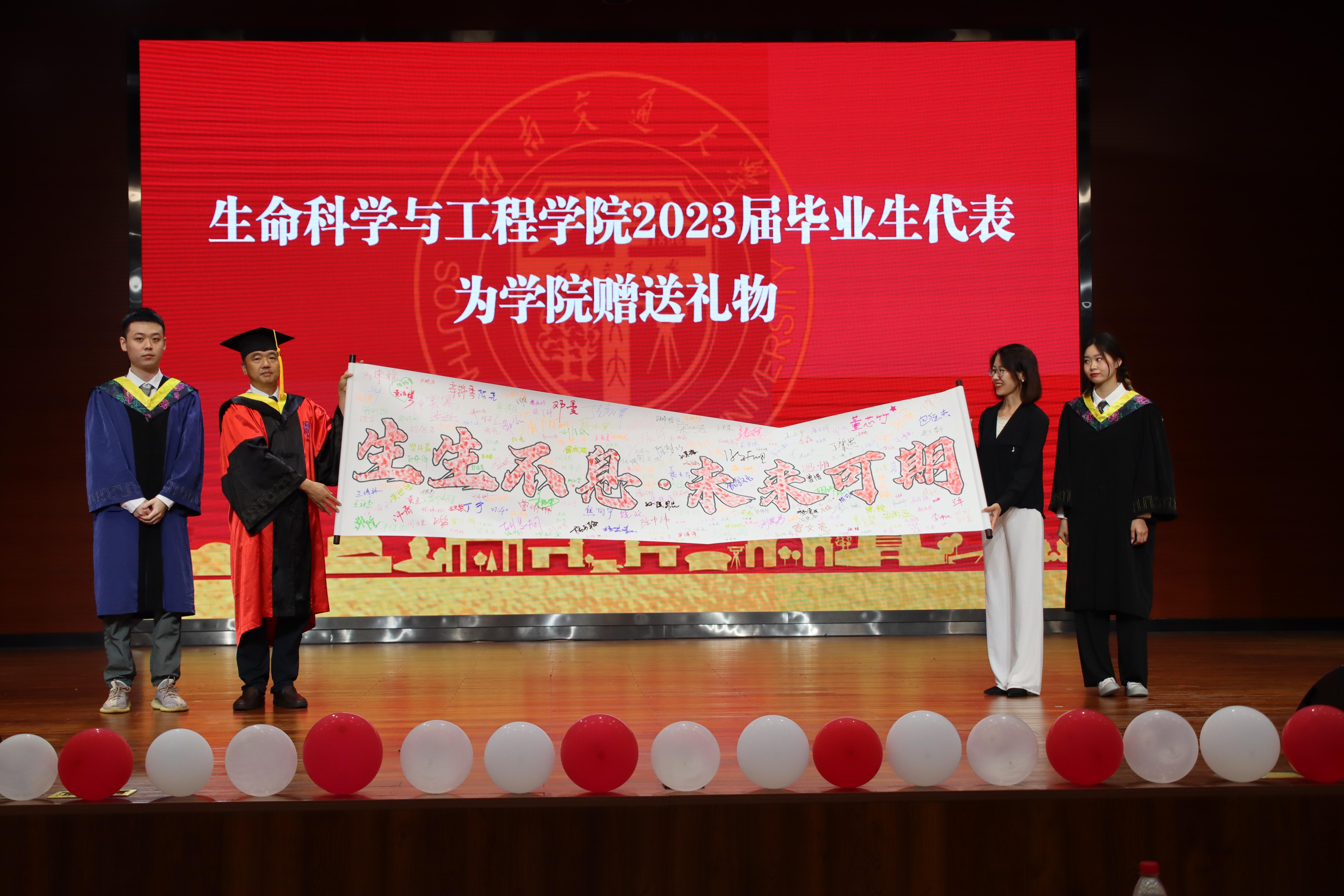 在典礼上,周先礼院长以《彰显生命之美,争做时代新人》为题寄语学院2023届全体毕业生。他表示,在过去几年中同学们迎难而上,同全国人民共同走过了一段极不平凡的抗疫之路,并赞扬同学们用自己的实际行动证明了新时代的交大生命人是堪当大任的。并向毕业生提出了三点希望:一是从生命出发,希望大家胸怀大志,做一个厚植家国情怀的人;二是从生命出发,希望大家苦练本领,做一个敢于担当作为的人;三是从生命出发,希望大家常学常新,做一个坚持终身学习的人。