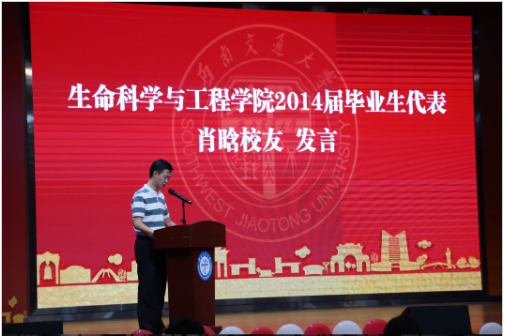 在典礼上,校友代表、学院2014届毕业生、四川省脱贫攻坚先进个人、凉山州烟草专卖局乡村振兴办副主任肖晗分享了自己积极投身凉山州脱贫攻坚、乡村振兴和全面建设社会主义现代化国家的新征程中的奋斗故事,激励学弟学妹们要以锐意进取、埋头苦干的奋斗姿态,在新时代的红色沃土上辛勤耕耘、奋勇开拓、建功立业。
