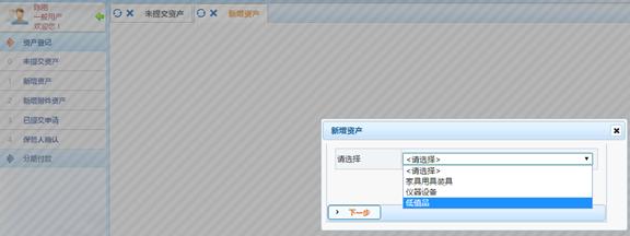 3.选择入账类别:家具用具装具、仪器设备、低值品