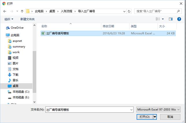 ④导入输入了出厂编号的“出厂编号填写模板”文件