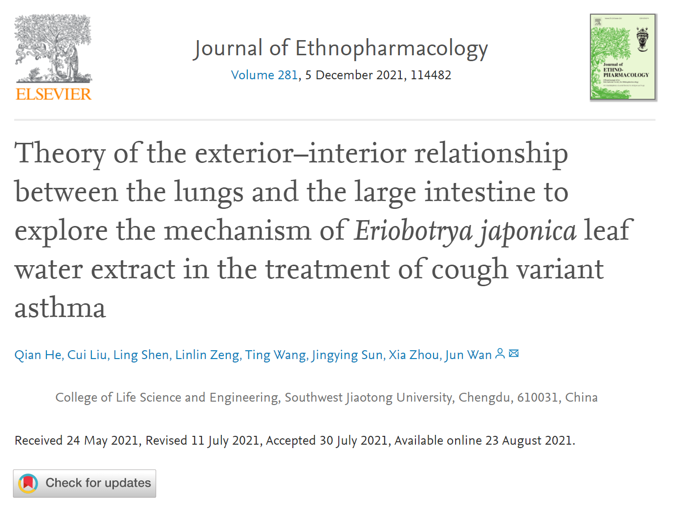 2021-09-15近日,中药药理学领域权威期刊《JOURNAL OF ETHNOPHARMACOLOGY》(影响因子3.908)在线发表了新澳门六合彩资料-新澳门六合彩开奖 万军...