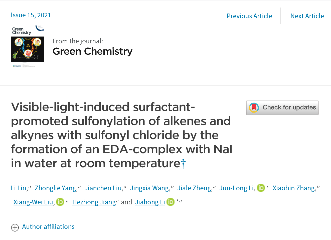 化学顶级期刊Green Chemistry发表新澳门六合彩资料 李加洪博士团队最新研究成果