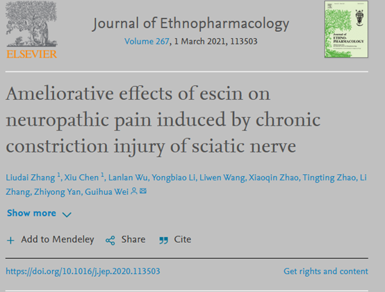 新澳门六合彩资料 张留代硕士在JOURNAL OF ETHNOPHARMACOLOGY发表了题为“Ameliorative effects of escin on neuropat...
