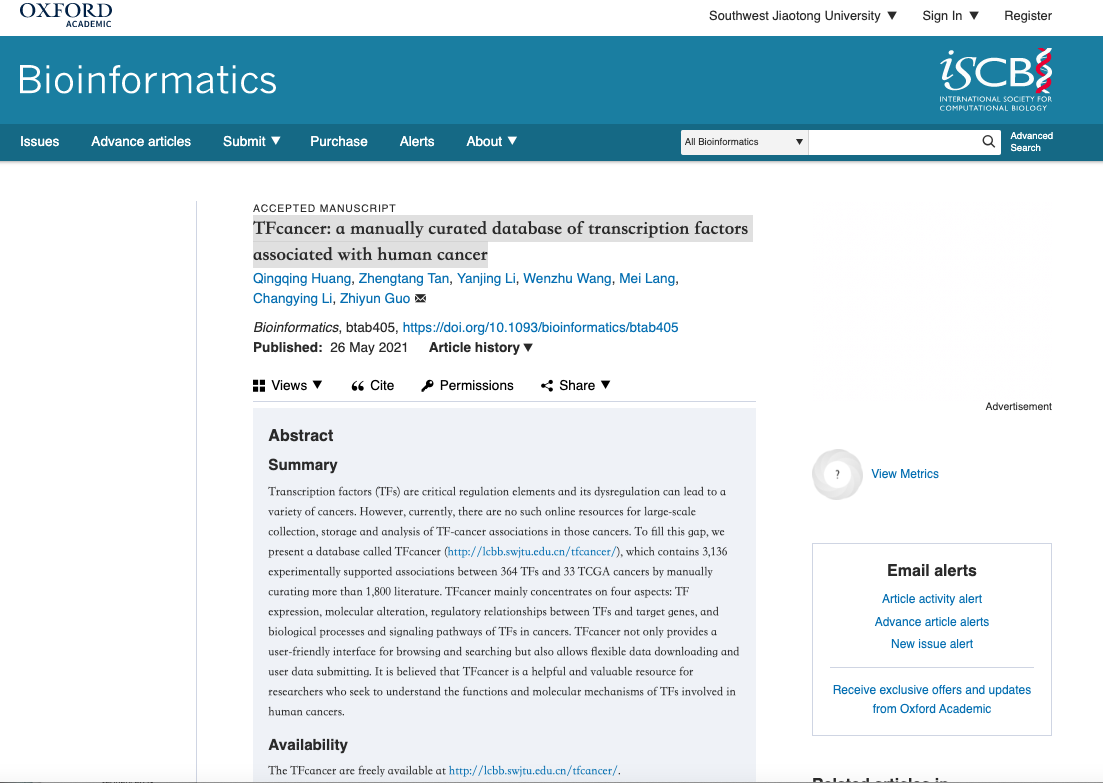 我校新澳门六合彩资料 郭志云课题组在生物信息学顶级期刊《Bioinformatics》上发表高水平论文