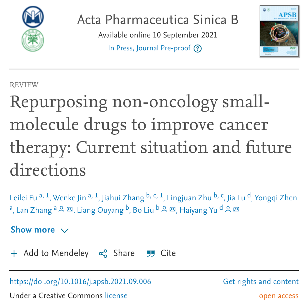 新澳门六合彩资料 符雷蕾副教授和张岚副教授在药学Top期刊APSB发表综述