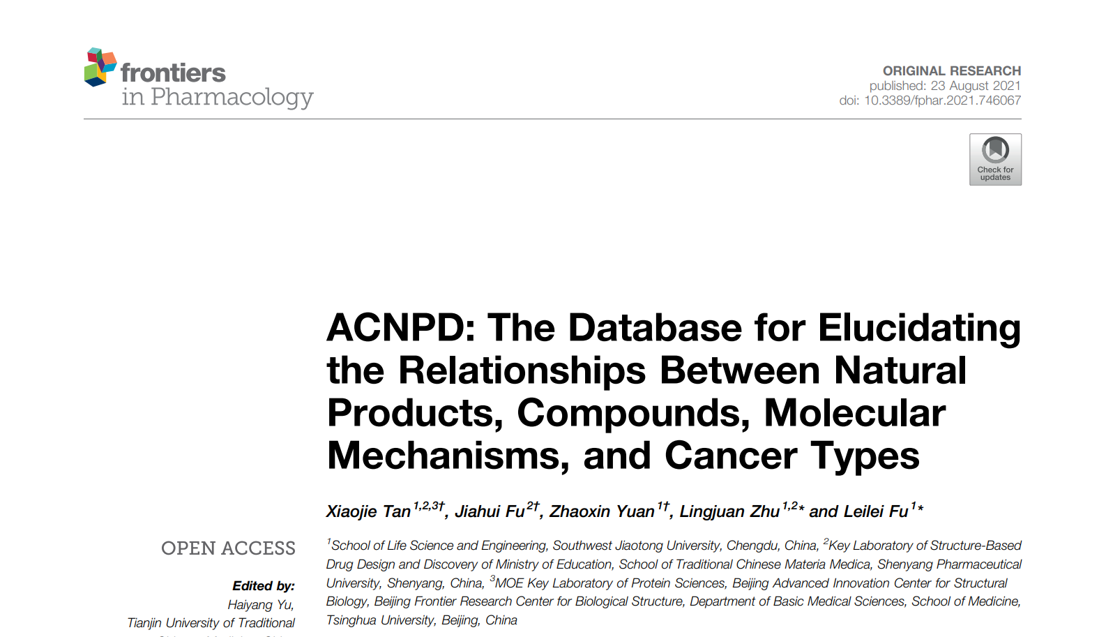 新澳门六合彩资料 符雷蕾团队构建抗肿瘤天然产物数据库ACNPD